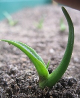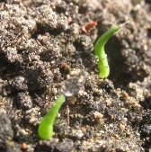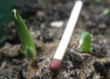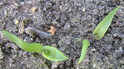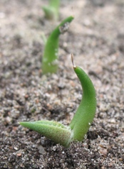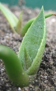 На этих фото те же растения 06 июля 2008 года, через месяц после посадки. Размер от 1.5см до 3см. У некоторых уже два листа.